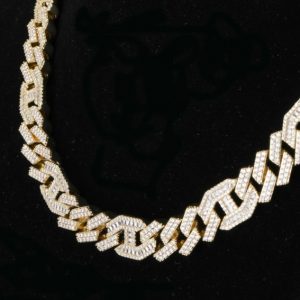 14MM Baguette Fabian Link Chain in Two Tone Gold