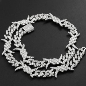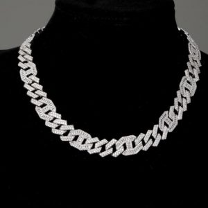 13MM Baguette Bumble Cuban Link Chain in White Gold